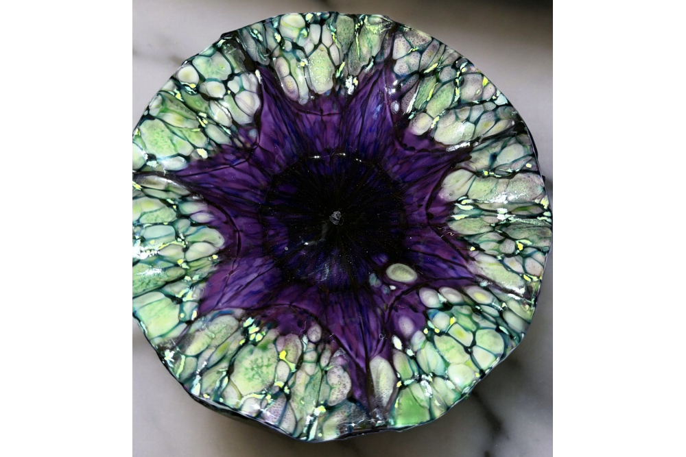 You will thoroughly enjoy discovering the magic that occurs when the glass flows during a hot time in the kiln. We will be using a round Patty Gray mold to control the size of our magic. Additional firings may be necessary as well as some cold working for size. After firings your creation will be slump into a bowl shape of your choice.